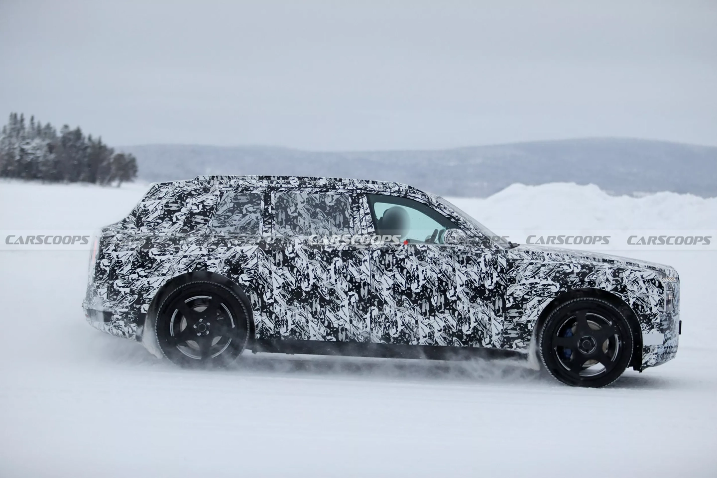 车身侧面展现出更具力量感的造型,包括凸起的发动机舱盖、明晰的肩线,以及进一步优化的一局面门把手计议。举座作风在陆续库里南气质的同期,光显向电动化主见面临。
